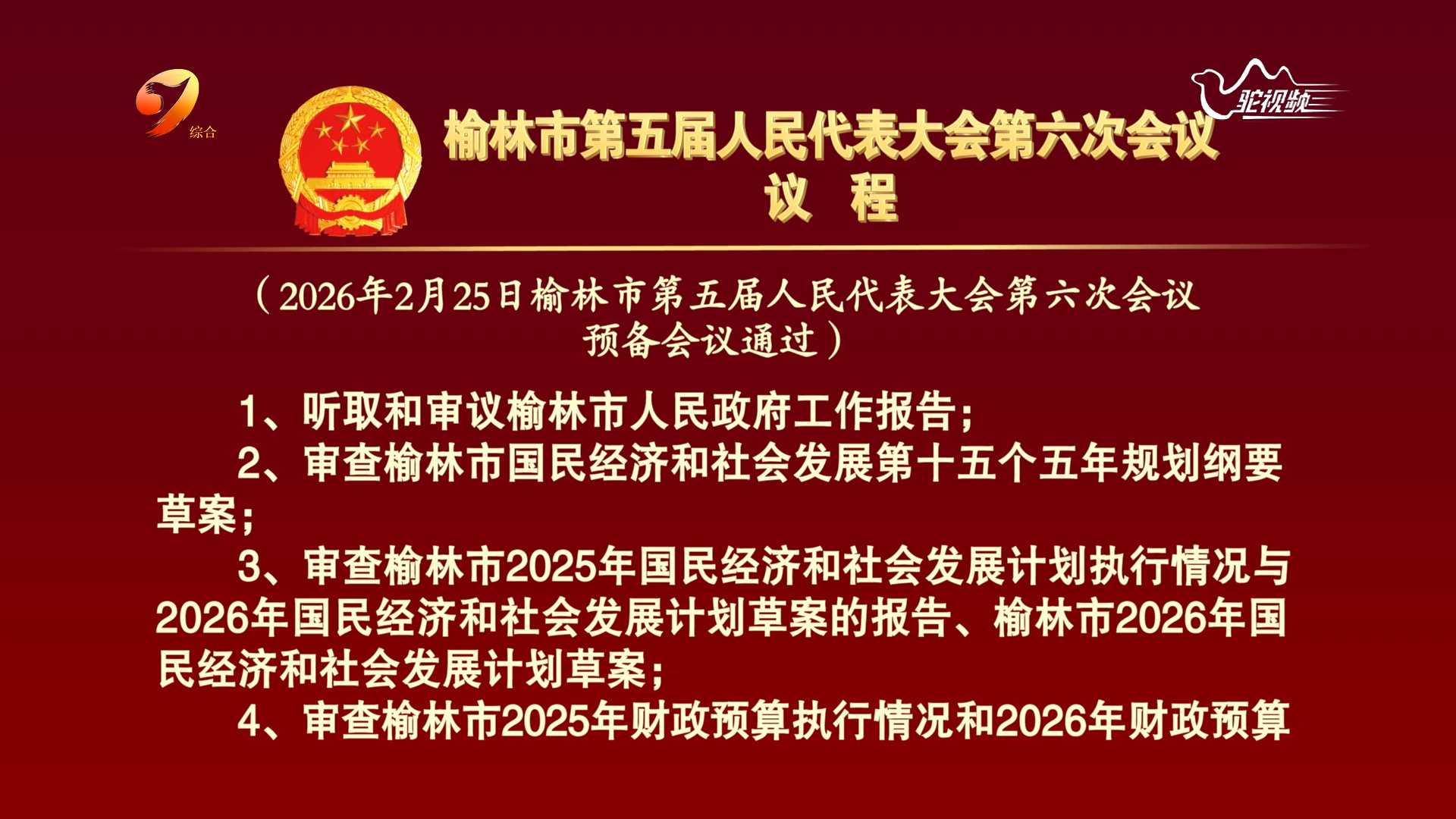 榆林市第五届人民代表大会第六次会议议程